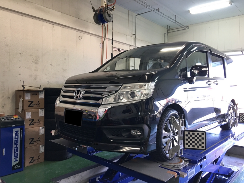本日、ステップワゴンにてパンクでの1本交換からアライメント作業行いました。