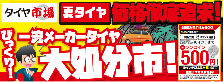 夏タイヤの大処分市・ビックリ市の方を好評につき延長中です(^_-)-☆