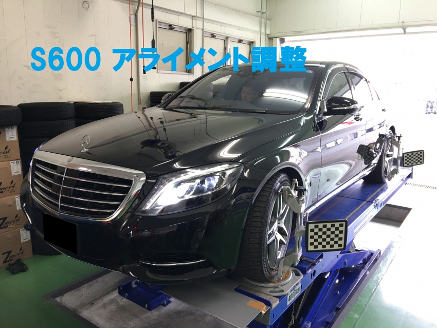 メルセデスベンツS600にてアライメント調整作業行いました!
