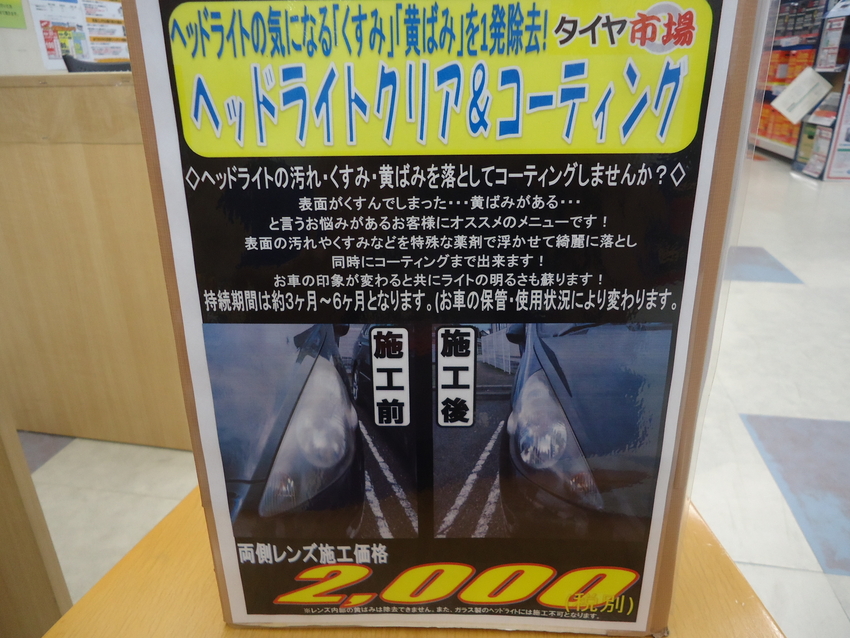 さて、最近ヘッドライトが黄ばんでいて気になる! とお困りの皆様、タイヤ市場では