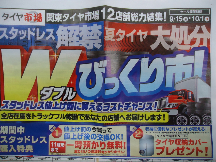 本日からスタッドレスタイヤ解禁のチラシが入りました!!