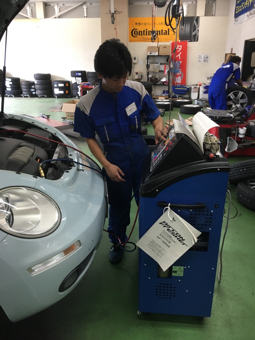 ニュービートル オールシーズンタイヤ取り付けとエアコンガスクリーニング