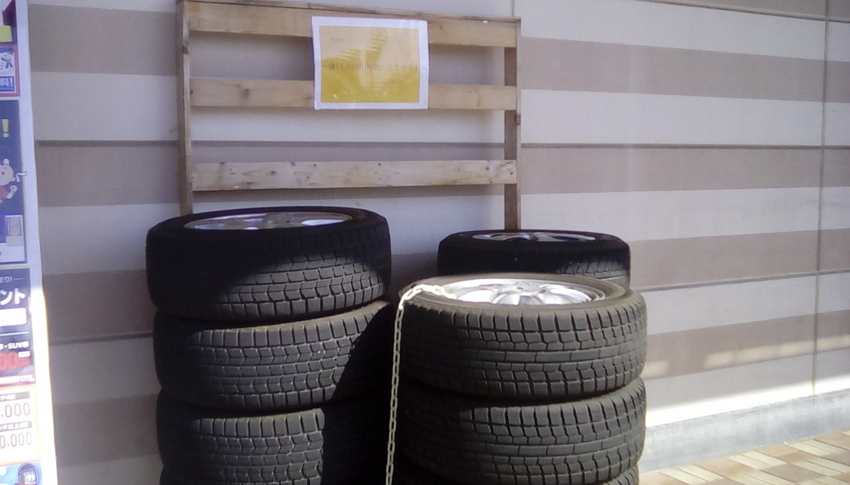 そこで気まぐれ中古スタッドレスホイールセットを店前に展開!