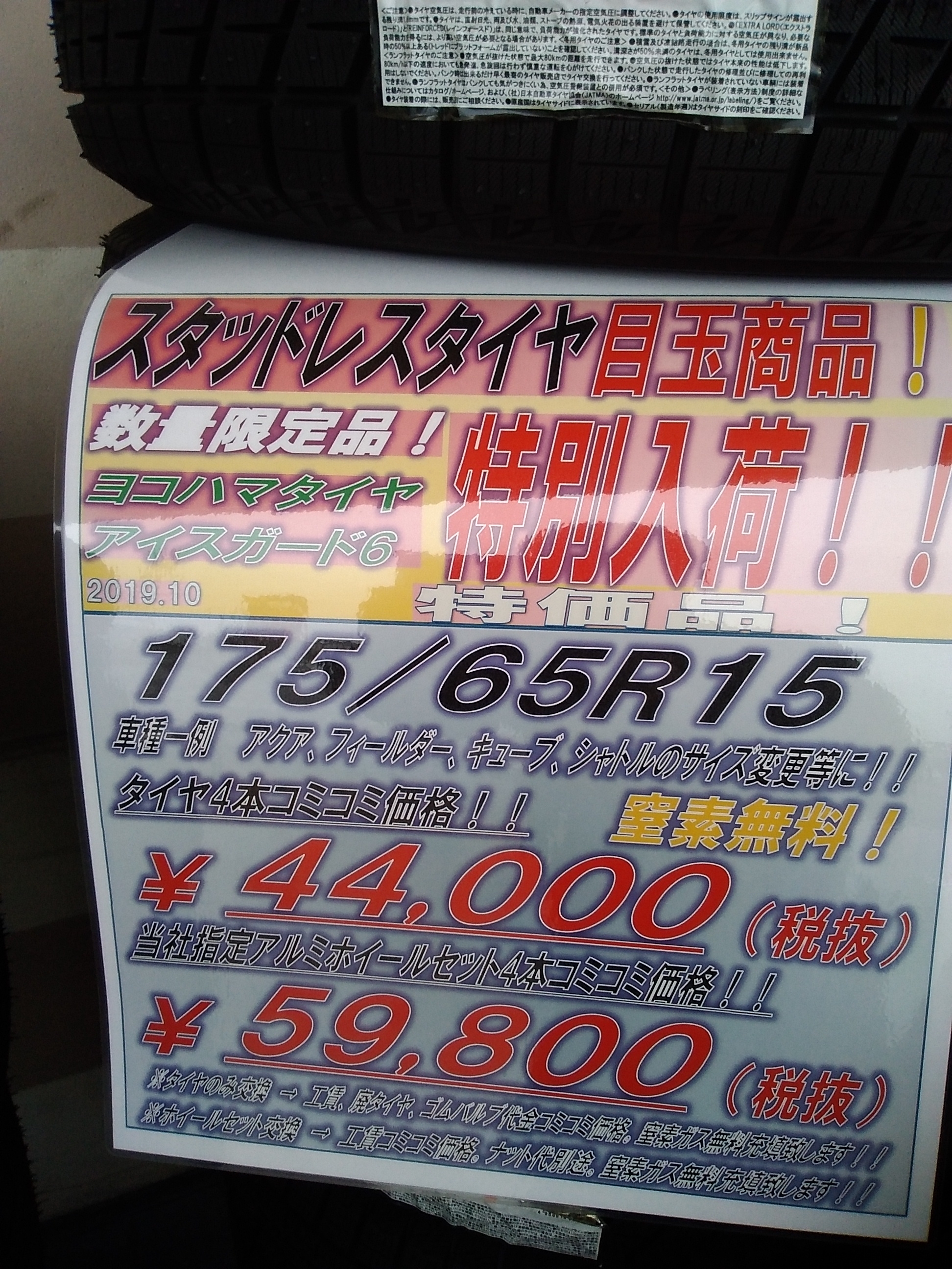 タイヤ4本+工賃もこみこみで¥44,000になります!