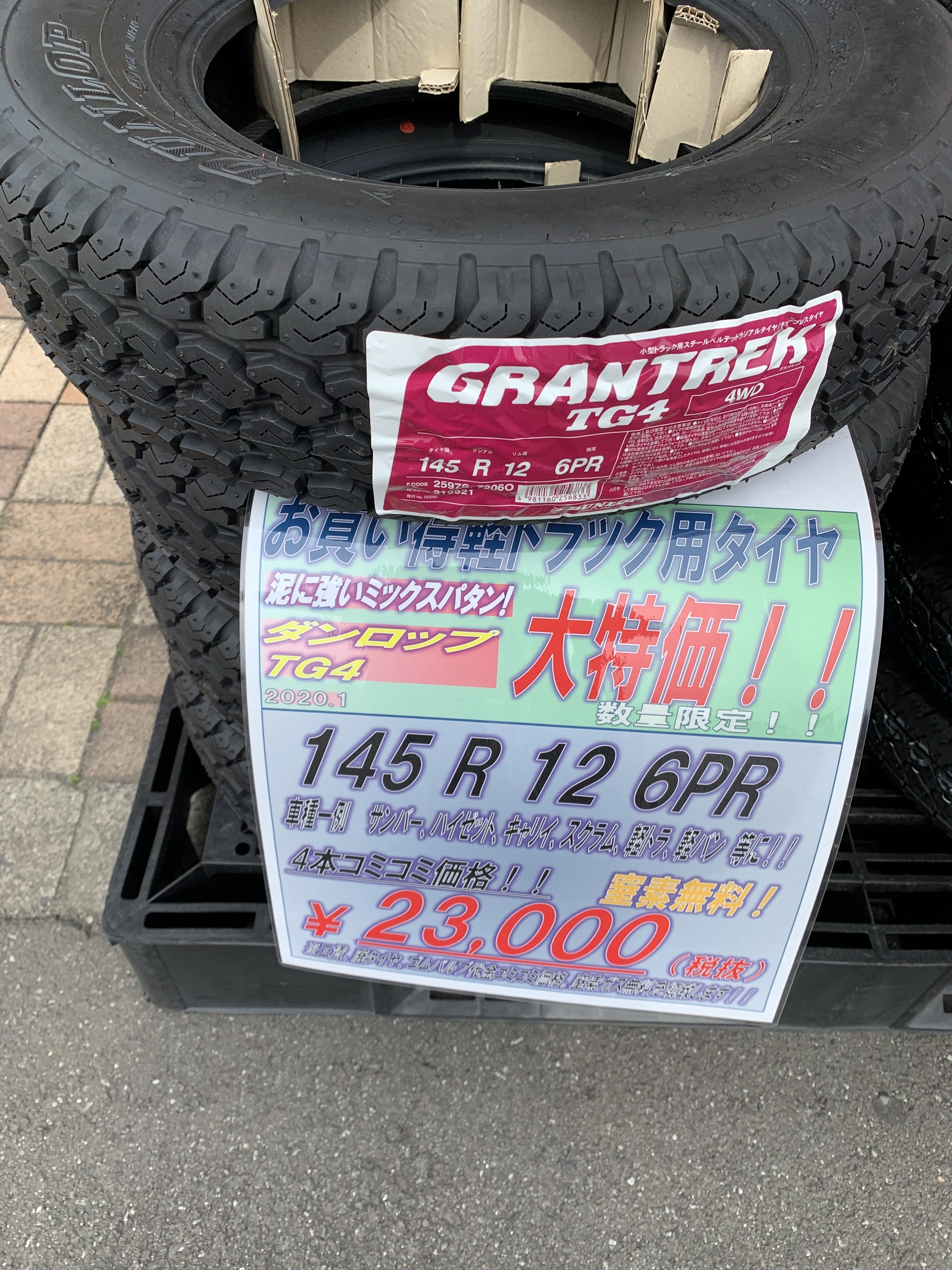 価格:23,000円(タイヤ4本、工賃、バルブ交換、タイヤ処分、バランス調整コミコミ、税込)