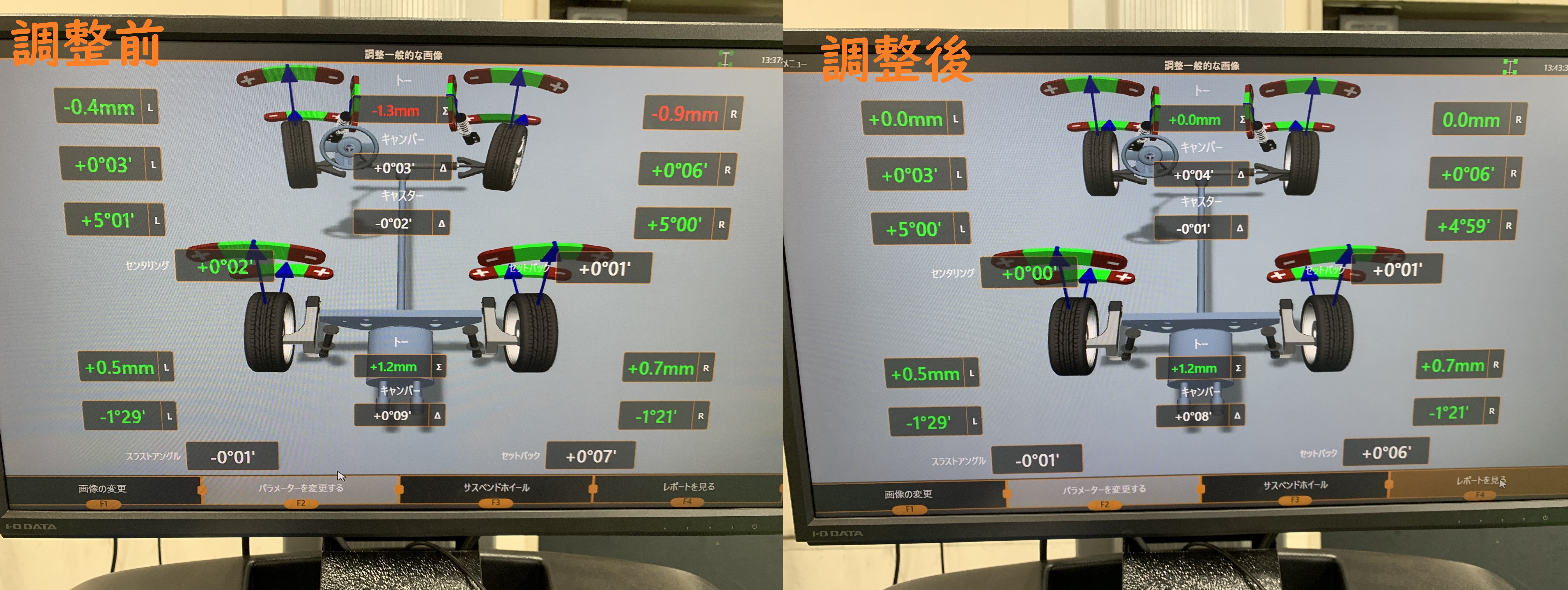 ずれている分を車の規定値に調整しなおさせて頂きました!