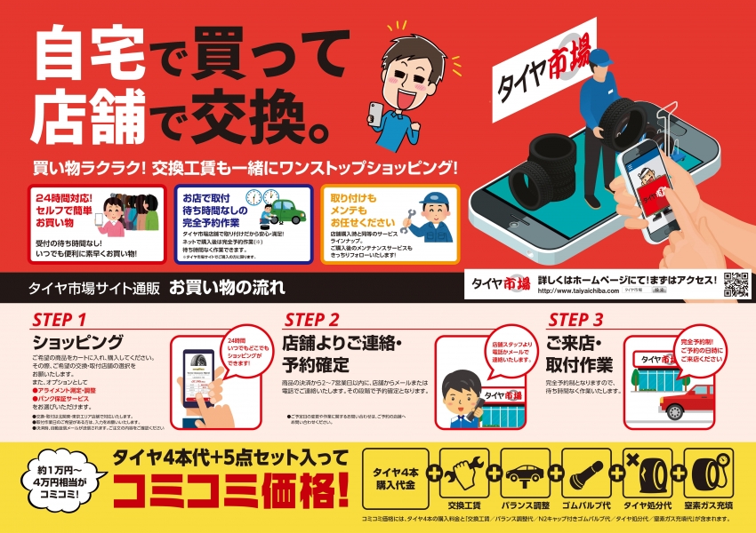 そこでぴったりなのが、タイヤをネットで買って交換は店舗でするというサービスです!!