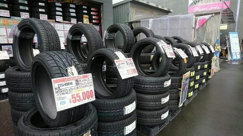 さらに、奥にはネット対抗価格のアジアンタイヤを展開しております。
