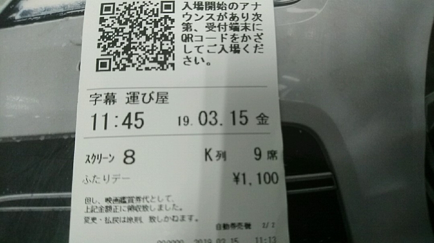 観たのは洋画 運び屋 先週の木曜日?金曜日?くらいから上映されている映画になります。