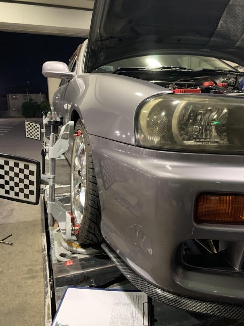 今回はスカイラインのアライメント調整の作業をさせて頂きました