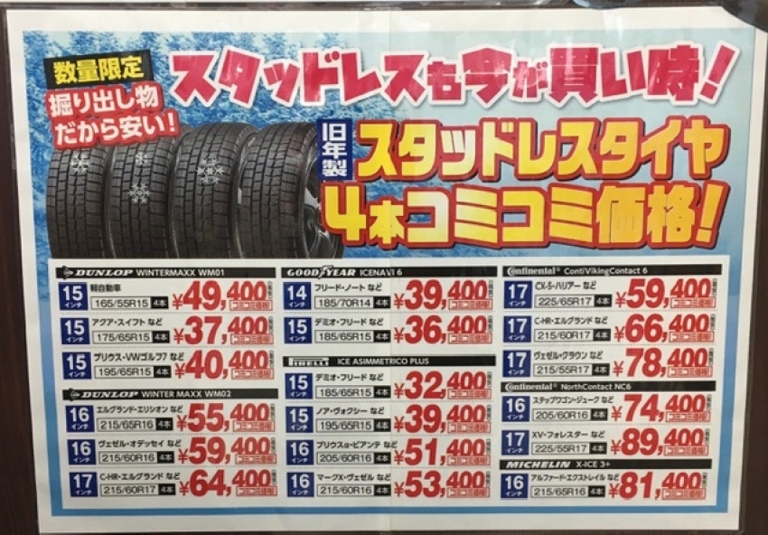 その前にタイヤ交換・メンテナンス・早めの冬タイヤ購入・ドレスアップ・アライメント調整