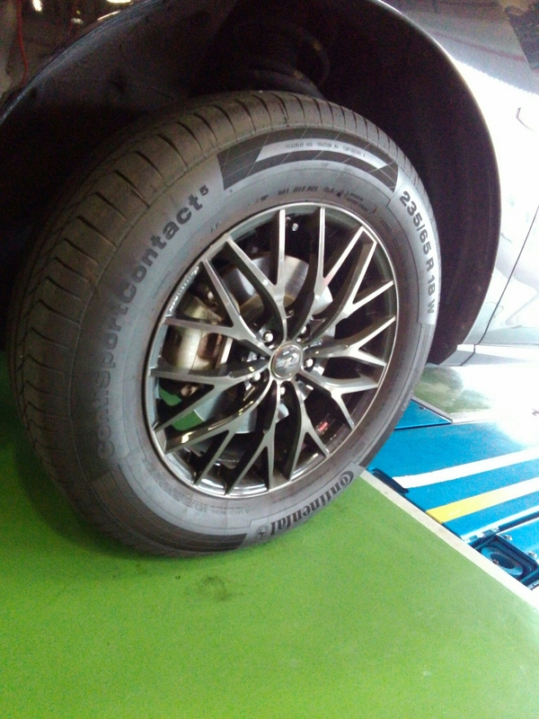 先月、タイヤとドレスアップホイールのセットをお求め頂いたムラーノお客様にご来店して頂きました。今回は点検+ガラスコーティングの作業になります。 タイヤはコンチネンタル スポーツコンタクト5とトップクラスのタイヤにレオニス MXとインパクトがあり、お洒落なホイールのセットになります。