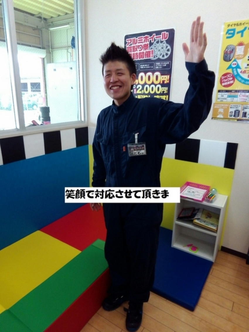 女性のお客様!!タイヤ屋さんって「行きにくい」「入りにくい」と思っていませんか?? 確かに入りにくいですよね!! でも大丈夫です。僕たちが笑顔で明るくお迎えさせて頂きますのでご安心を!!!