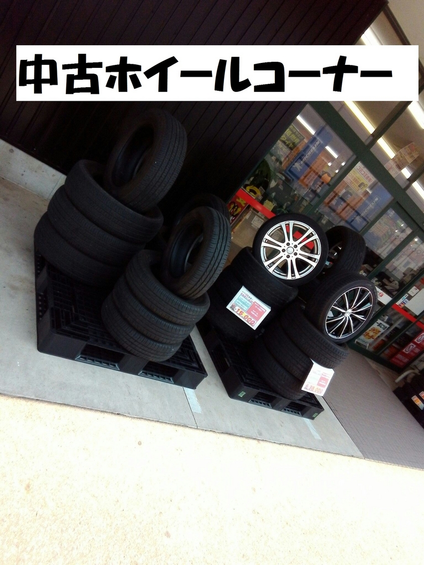 中古ホイール、中古タイヤのコーナーが完成したようなのでご報告をっ!!思いましてUPしました。それぞれ3セット分ずつ展示しております。特にホイールコーナーの方は凄いです!!(笑)(笑) 何がって思いますよね!?? 大丈夫です。お答えしますので。 何が凄いと言うと中古と言いながらも中には新品に近い物もあります。後は、お値段です。展示している品は全て18インチ以上になるのですが、お値段が「えっ!こんなんで買えるの??」と思ってもらえると思います。