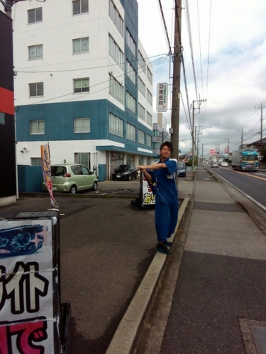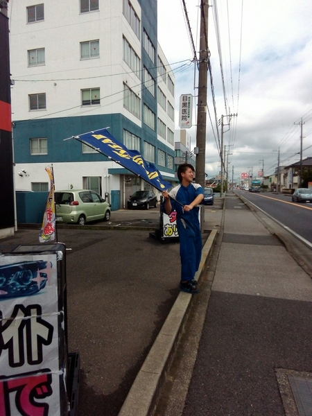 久しぶりに!!旗振りの写真を取って頂きましたのでUPしました!! 今日も元気に旗振りしてますのでぜひぜひ僕の勇姿を見に来てください(笑)(笑) 皆様のご来店スタッフ一同心よりお待ちしております。