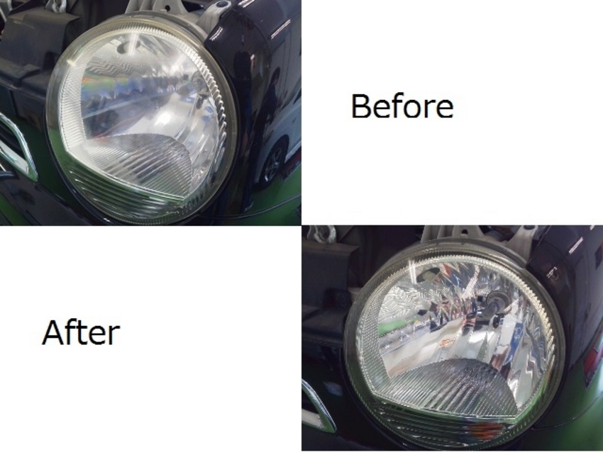 くすんでいたヘッドライトを磨き上げ更に、コーティングをして、