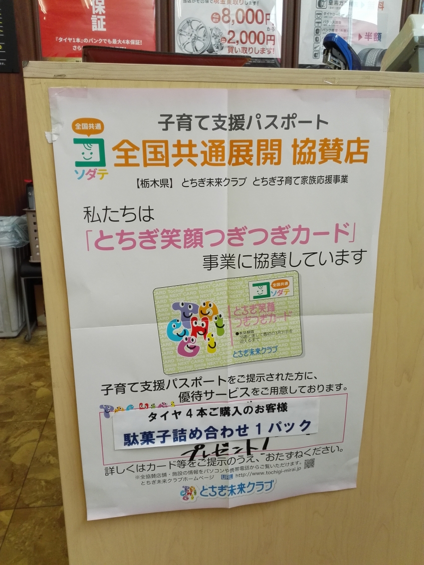 子育て支援パスポート!!! ☆タイヤ市場 西川田店☆