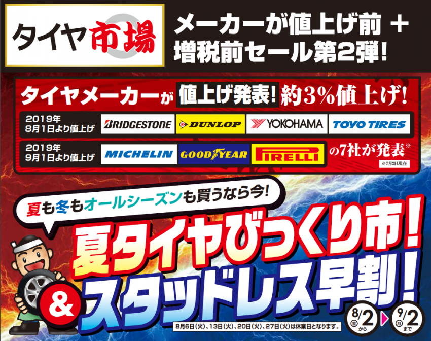 タイヤメーカーは値上げを発表し、もう少しすると今度は増税という現実が・・・