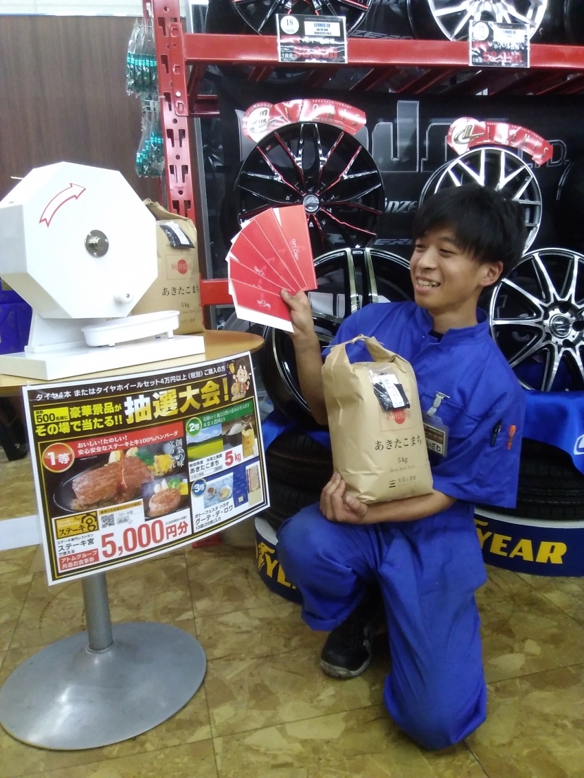 タイヤ4本、または、タイヤホイールセット4万円(税別)ご購入のお客様対象になります。