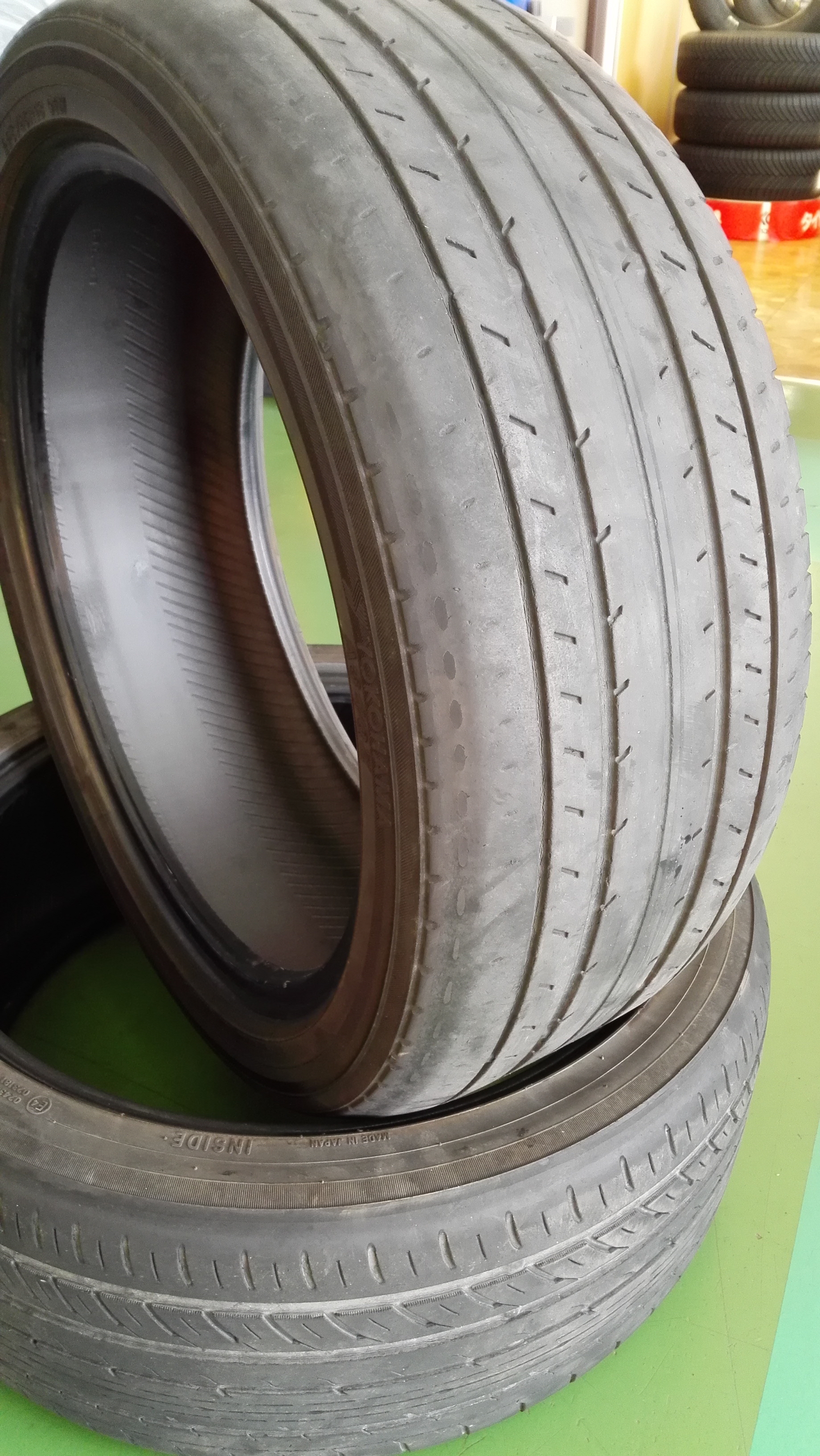 写真のようにタイヤの片方だけ減りが酷かったりすると、アライメントが狂ってしまってる可能性が高いのでタイヤ交換の際にアライメント調整をおすすめしています('ω')!!